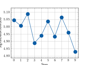 >>> # Example plotting multiple values >>> import torch >>> from torchmetrics.audio import SignalDistortionRatio >>> metric = SignalDistortionRatio() >>> values = [ ] >>> for _ in range(10): ... values.append(metric(torch.rand(8000), torch.rand(8000))) >>> fig_, ax_ = metric.plot(values)