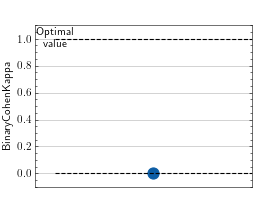 >>> from torch import rand, randint >>> # Example plotting a single value >>> from torchmetrics.classification import BinaryCohenKappa >>> metric = BinaryCohenKappa() >>> metric.update(rand(10), randint(2,(10,))) >>> fig_, ax_ = metric.plot()
