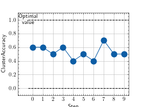 >>> # Example plotting multiple values >>> import torch >>> from torchmetrics.clustering import ClusterAccuracy >>> metric = ClusterAccuracy(num_classes=4) >>> values = [ ] >>> for _ in range(10): ... values.append(metric(torch.randint(0, 4, (10,)), torch.randint(0, 4, (10,)))) >>> fig_, ax_ = metric.plot(values)