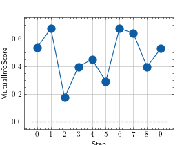 >>> # Example plotting multiple values >>> import torch >>> from torchmetrics.clustering import MutualInfoScore >>> metric = MutualInfoScore() >>> values = [ ] >>> for _ in range(10): ... values.append(metric(torch.randint(0, 4, (10,)), torch.randint(0, 4, (10,)))) >>> fig_, ax_ = metric.plot(values)