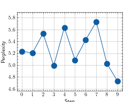 >>> # Example plotting multiple values >>> import torch >>> from torchmetrics.text import Perplexity >>> metric = Perplexity() >>> values = [ ] >>> for _ in range(10): ... values.append(metric(torch.rand(2, 8, 5), torch.randint(5, (2, 8)))) >>> fig_, ax_ = metric.plot(values)